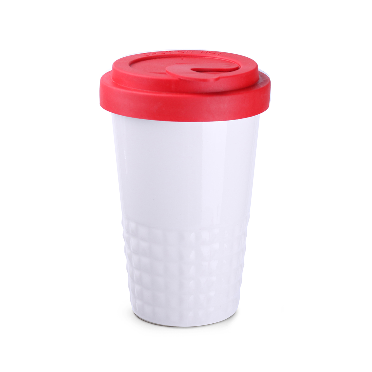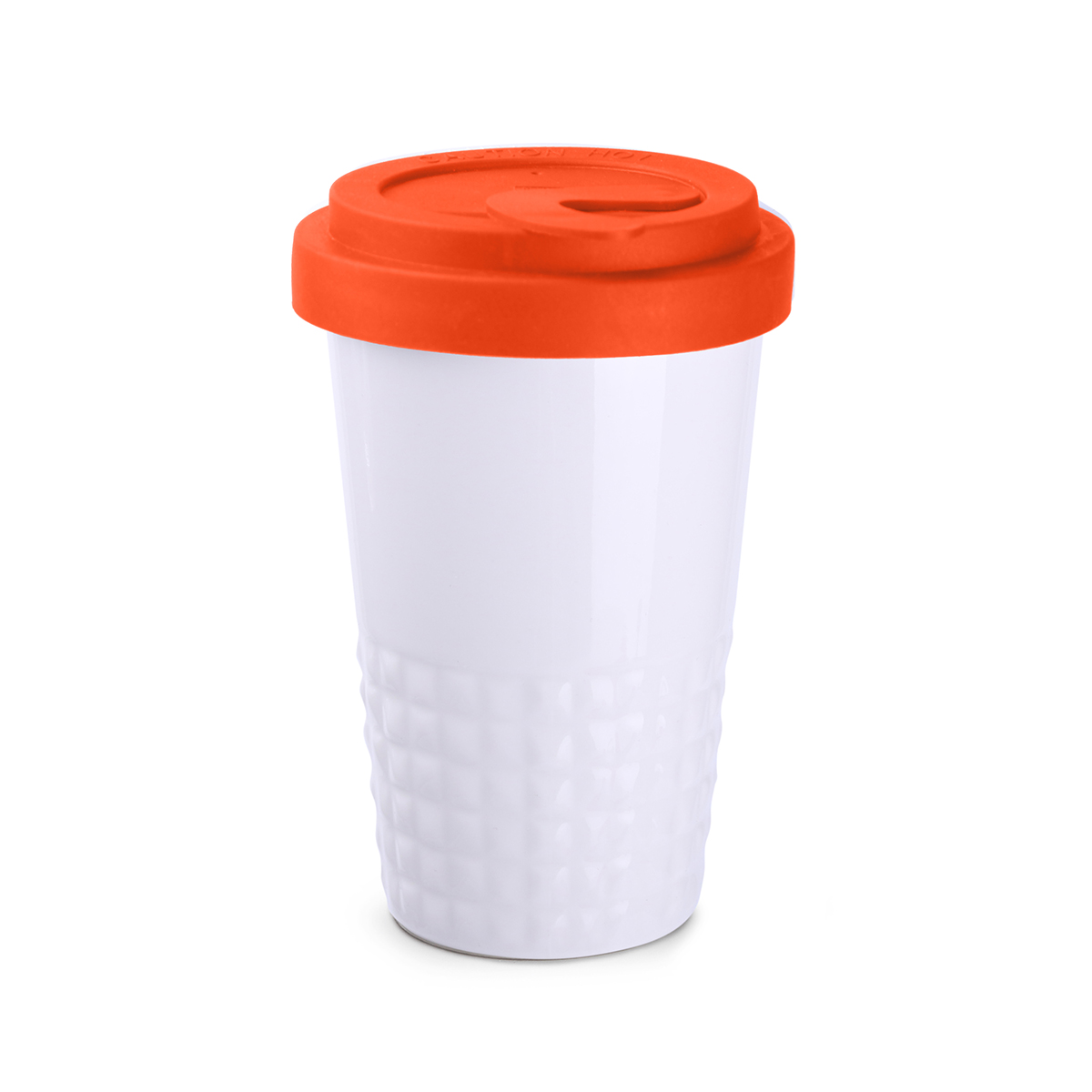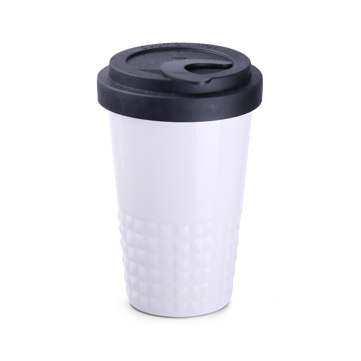 Finition subtile de la partie inférieure du mug avec ses formes sculpturales en pointe-de-diamant. Fermé par un couvercle, ce mug en porcelaine à double paroi offre une excellente isolation thermique.