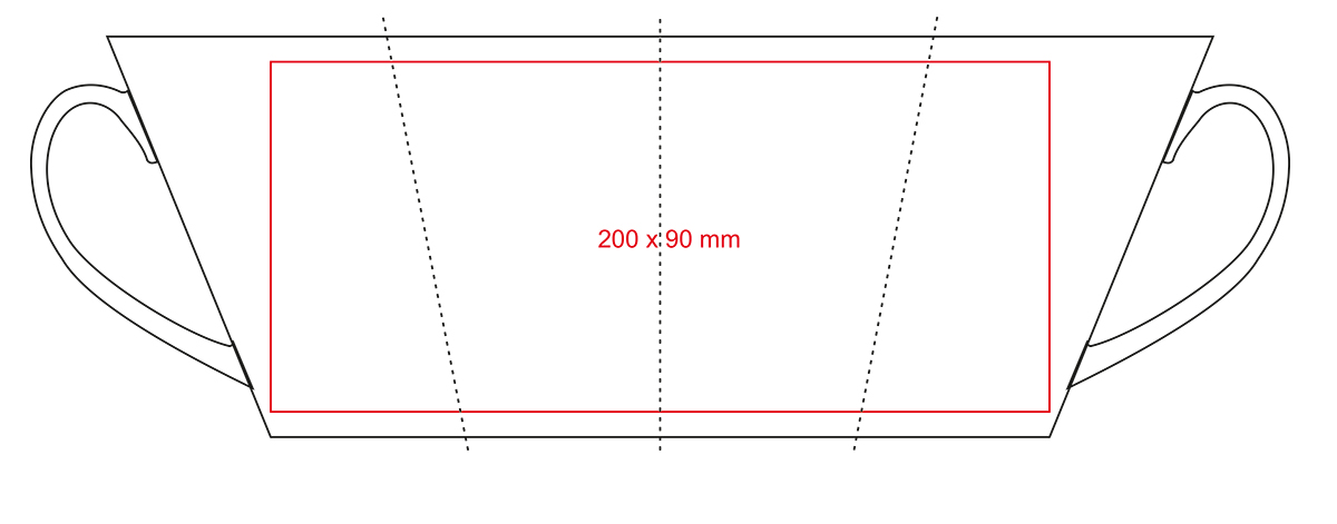 Personnalisation de l`anse avec décalcomanie organique - 1 couleur (55x10 mm) Personnalisation au sein d`un projet de sublimation (200x90 mm) |