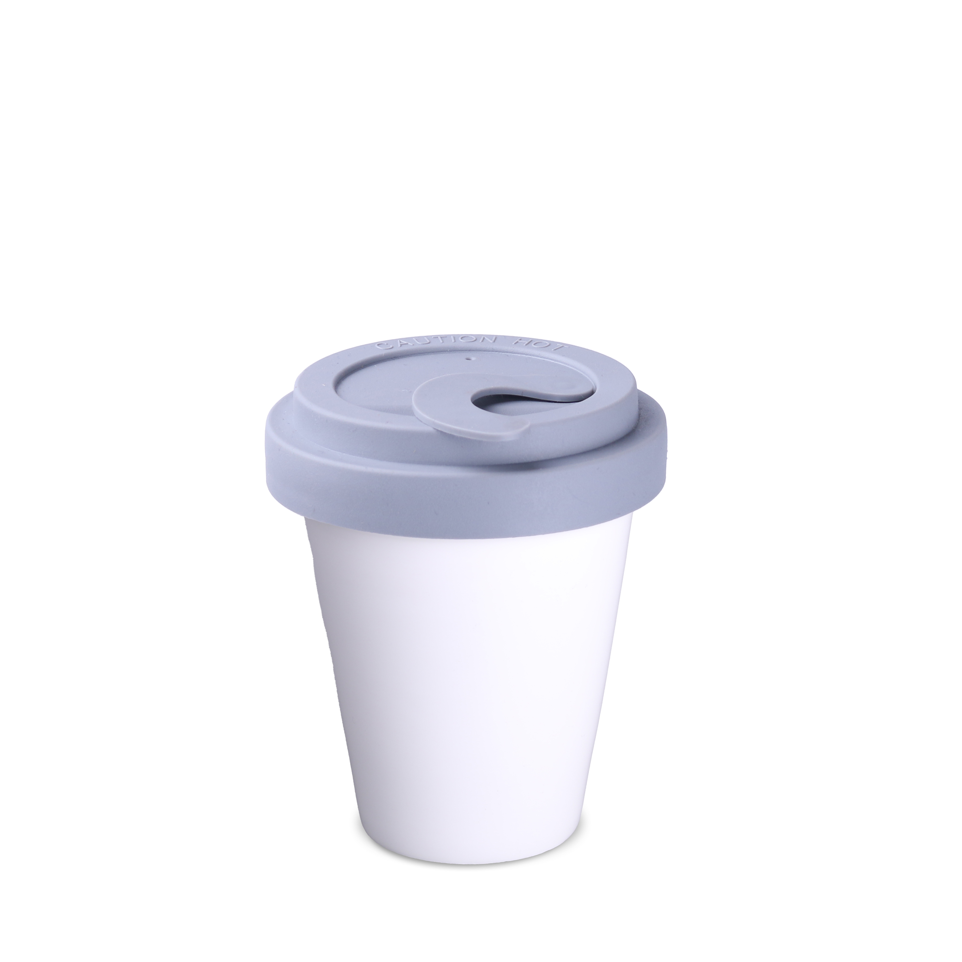 Tasse pratique en porcelaine avec couvercle en polymère et bouchon, protégeant contre les déversements accidentels de boissons. Grâce à sa structure interne rare à double paroi en porcelaine, cette tasse se caractérise par un niveau élevé d'isolation thermique. Le corps de la tasse est disponible en blanc et en noir satiné. Le couvercle est disponible dans les couleurs suivantes : blanc, orange 021C, gris Cool Gray 7, bleu marine 294C, marron 4695C, noir, rose 4064C, bleu 2144C, eucalyptus 5493C, sable du désert 2310C.